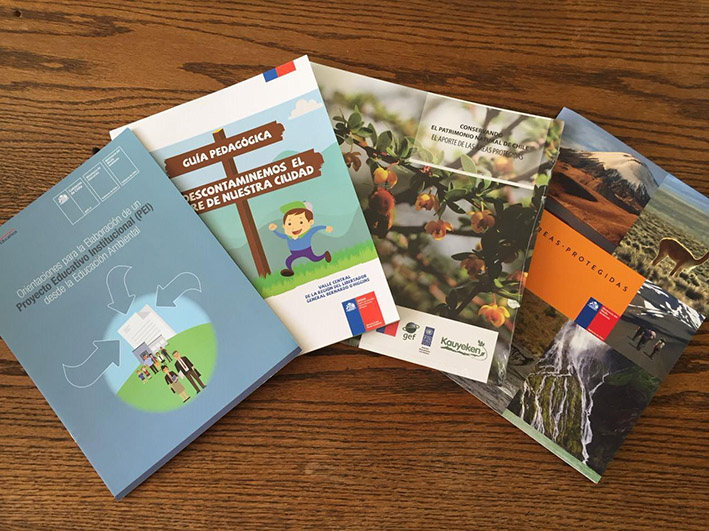 Entre los ejemplares entregados, destacan la "Guía Pedagógica para Estudiantes, calidad del aire del Valle Central", "Manual de la Casa Verde", "Guía para la Conservación y Seguimiento Ambiental de Humedales Andinos", "Las Áreas Protegidas de Chile" y "Conservación del Patrimonio Natural de Chile", entre otros./