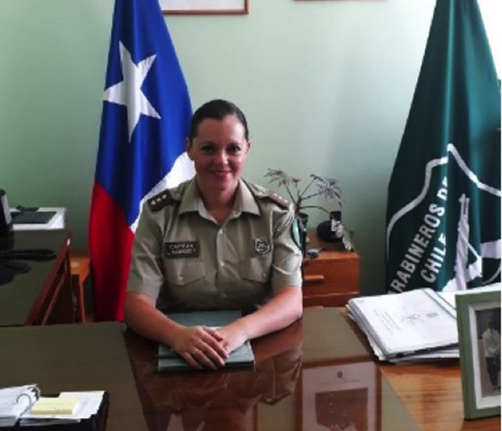 La Oficial prontamente será ascendida al grado de Mayor de Carabineros, quien desempeña un rol fundamental, destacándose por ser una mujer de coraje, fuerza y energía, quien se entrega diariamente por la labor policial y comunitaria.