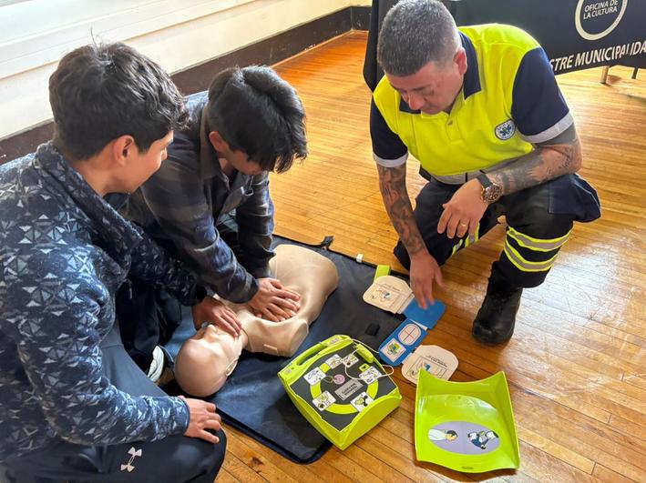 La jornada se desarrolló en el Centro Cultural Agustín Ross y abordó la cadena de supervivencia adulto extrahospitalaria, entregando herramientas prácticas para actuar frente a situaciones como asfixias por inmersión, paros cardiorrespiratorios asociados a cardiopatías u otras patologías preexistentes que puedan ocurrir en las distintas playas de la comuna durante la temporada estival.
