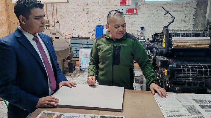 En las oficinas ubicadas en calle Quechereguas, Matías Riveros conversó con los diferentes equipos que colaboran con el diario, donde también tuvo la oportunidad de conocer la imprenta, siendo el Diario Sexta Región uno de los pocos medios de regiones que tiene sus propios talleres de impresión.