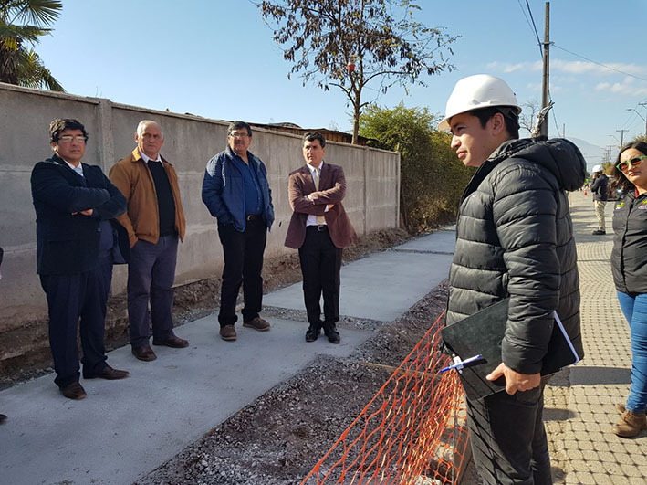 El alcalde Marco Contreras en compañía de la Comisión de Infraestructura del Concejo Municipal compuesta por los concejales Ignacio Urbina, Hernán Riveros, Julio Inostroza y Luis Quezada, visitó las obras de construcción del nuevo recorrido patrimonial en las Poblaciones Gabriela Mistral, Pablo Neruda, Ramón Poblete y Los Presidentes.