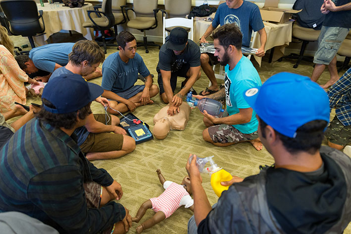 Destacados surfistas y embajadores de la marca Patagonia como Kohl Christensen Greg Long, y Ramón Navarro junto a apneistas y expertos en primeros auxilios buscan enseñar técnicas de supervivencia en condiciones de mar extremas.