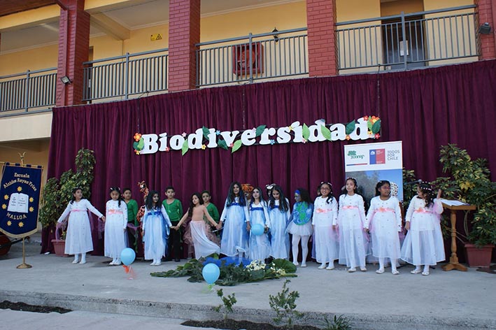 En la semana del Día Mundial de la Biodiversidad, CONAF en conjunto con la primera escuela fundada en la comuna de Malloa, Alcides Reyes Frías, celebró la efeméride en un acto al que llegó el alcalde, concejales y directores de escuelas de la zona.