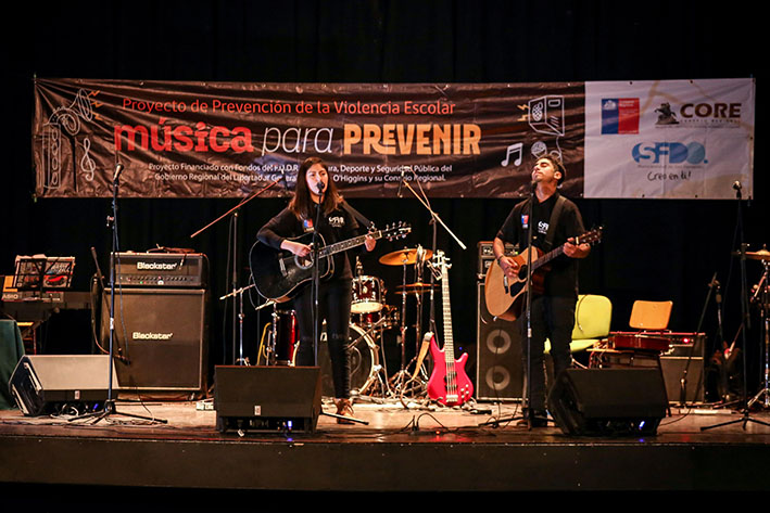 El objetivo de esta iniciativa, es reducir los factores de riesgo y fortalecer los factores protectores relacionados con la violencia escolar a nivel individual y grupal, mediante la ejecución de seis talleres (Guitarra, Bajo, Batería, Piano, Percusión y Ensamble), beneficiando a 48 alumnos, durante los tres meses en que se realizaron.