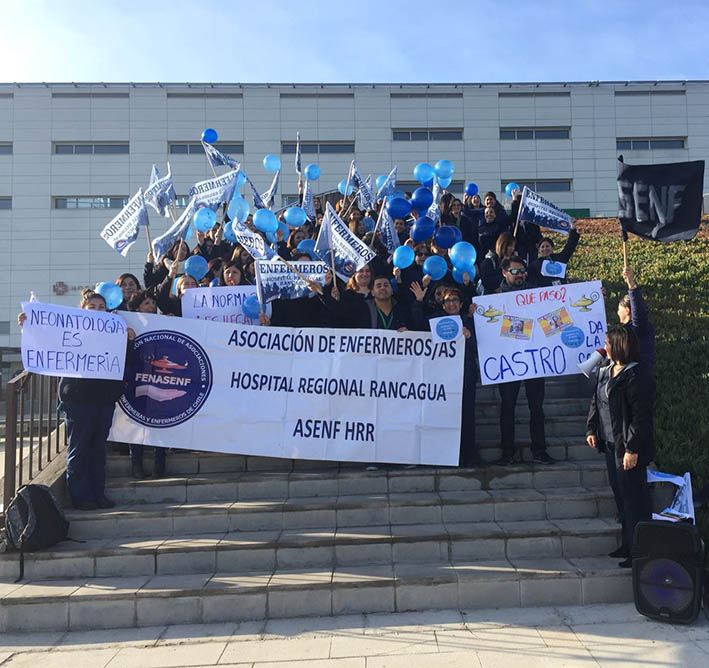 Durante la jornada de ayer una importante cantidad de enfermeras de la región de O´Higgins se sumaron a la movilización nacional que el gremio realizó a favor del cumplimiento del dictamen ratificado en tres oportunidades por la Contraloría Regional de la República y que establece que la labor de las y los profesionales comprende la gestión del cuidado de las personas en todo su ciclo vital, es decir desde el nacimiento hasta la muerte.