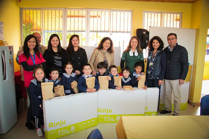 La alcaldesa Gloria Paredes Valdés entregó a niños y niñas de prekinder de todos los establecimientos educacionales municipales de Palmilla, el Rincón de Juego, RINJU, que entrega el Subsistema Chile Crece Contigo.