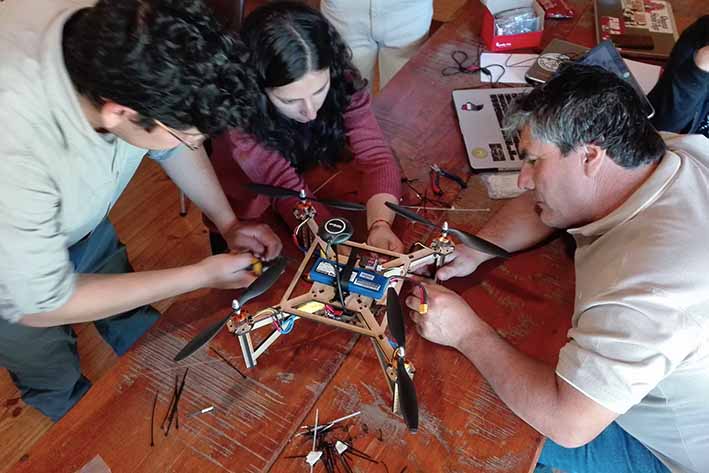 En el taller, eminentemente práctico, realizado en el Centro Experimental INIA Hidango, participaron profesionales y técnicos de distintas áreas, que fueron capacitados, durante cuatro días, en el uso, armado, reparación y configuración de drones, para la toma de fotografías aéreas y fenotipado de plantas en los ensayos de campo. Cabe señalar que el armado de drones y su configuración están basados en tecnologías de open hardware (hardware abierto), es decir, las que no necesitan de autorización o licencia para su uso.