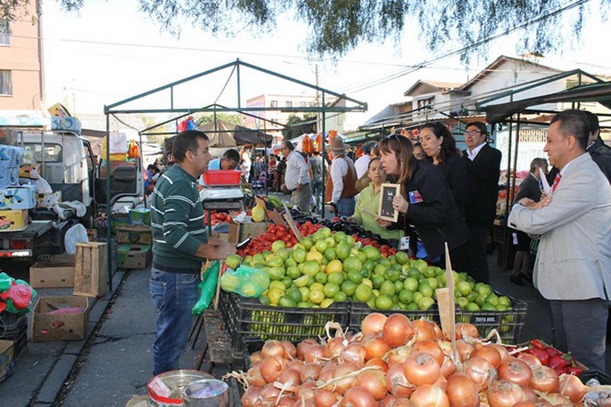 La secretaria Ejecutiva del Sistema Elige Vivir Sano en Comunidad del Gobierno de Chile, Claudia Honorato, acompañada por la seremi de Desarrollo Social, Claudia Díaz Morales, y el director regional de Sercotec, Sergio Fuentes Rojas, visitó la feria libre de la población Rancagua Sur para entregar, a los comerciantes, pizarras nutricionales.