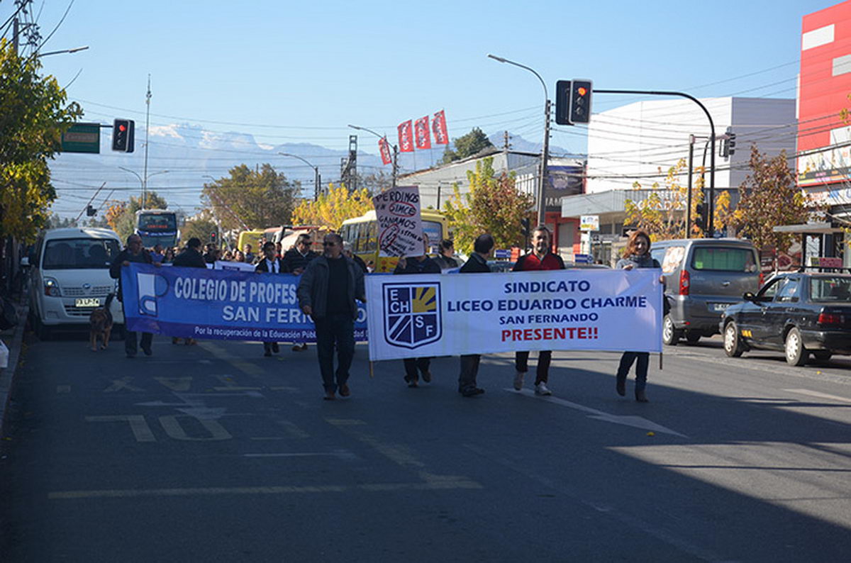 Profesores, alumnos y apoderados de colegios municipalizados de la comuna de San Fernando se movilizaron durante la mañana de ayer miércoles para protestar contra la CORMUSAF por el no pago total de sus sueldos.