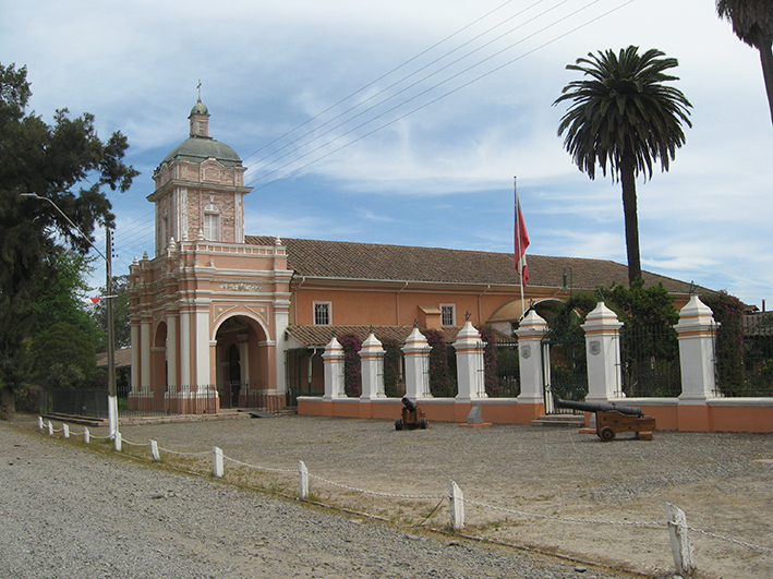 Continuando el recorrido, el grupo llegó hasta el monumento histórico Casas de la Hacienda San José del Carmen del Huique, donde se apreció es estilo de la arquitectura rural del Chile central y su iglesia de estilo neoclásico, como también los cuatro cañones de guerra que están en el frontis de la casa y que habrían pertenecido dos de ellos a la Esmeralda que fue hundida en Iquique, de donde fueron extraídos para dejarlos en el frontis de esta casa Museo de Sitio que actualmente pertenece al Ejército.