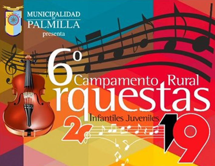 Como parte del programa cultural que impulsa la alcaldesa Gloria Paredes Valdés, los días 18, 19 y 20 de octubre se realizará el VI Campamento Rural de Orquestas Juveniles Palmilla 2019, que contará con la presencia de las orquestas sinfónicas de Palmilla, Providencia, Coltauco, San Vicente de TT, San Fernando, Chimbarongo y Teno.