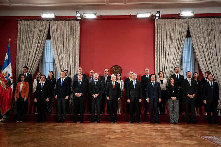 Luego el presidente Piñera comenzó a realizar el juramento uno a uno a los nuevos ministros como Gonzalo Blumel en Interior, Ignacio Briones Rojas en Hacienda, Karla Rubilar en la Secretaria General de Gobierno, Felipe Ward en la Secretaría General de la Presidencia, Lucas Palacios Cobarrubias en Economía, María José Saldivar en Trabajo, Julio Isamit en Bienes Nacionales, Cecilia Pérez en Deportes