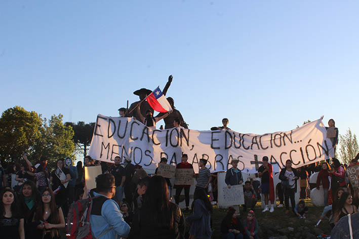 Las fuerzas policiales comenzaron a disolver la manifestación con gases lacrimógenos, situación que hizo que la marcha se disipara por algunos minutos y volviera a la entrada norte para acceder nuevamente a la calle Bernardo O'Higgins.