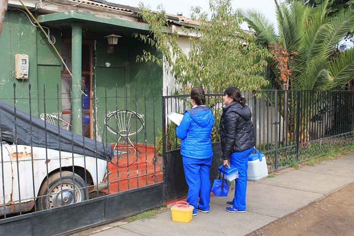 Funcionarias de CESFAM Rienzi Valencia de Rengo, realizan puerta a puerta vacunando contra la influenza, a todos los mayores de 65 años y población en general que a la fecha aún no se vacuna.
