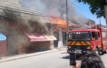 Al menos cinco locales comerciales se han quemado producto del gigantesco estructural que esta tarde se declaró en sector céntrico de la comuna de Chimbarongo.