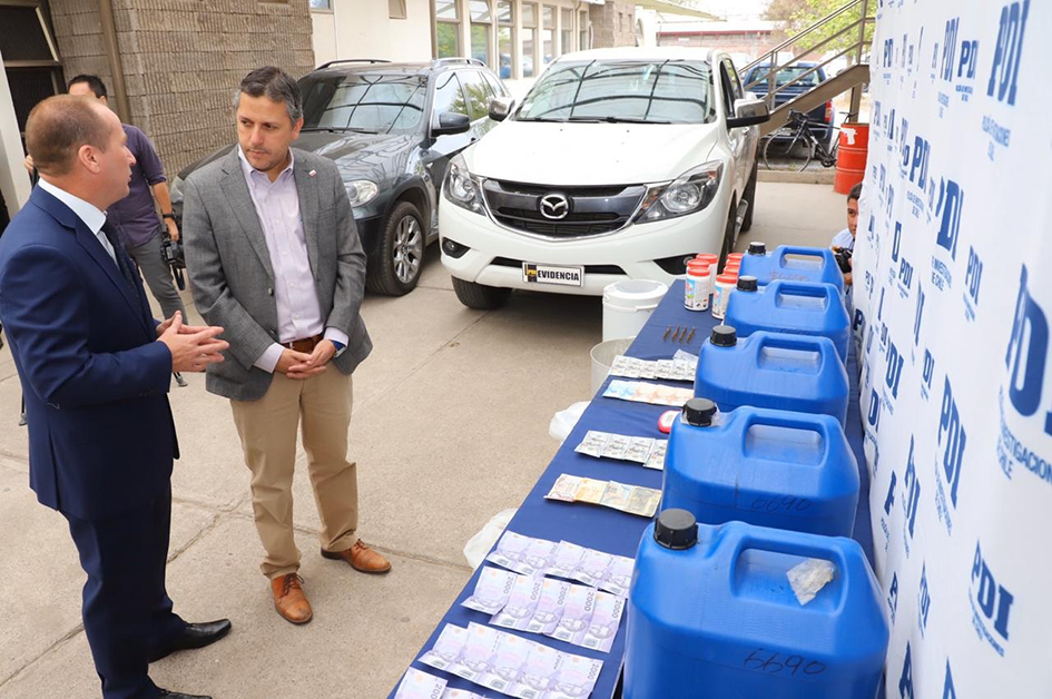 El decomiso de 105 kilos de cocaína líquida, diversos insumos para procesar la droga, además de 5 personas detenidas, dos de nacionalidad chilena y tres provenientes de Bolivia, fue el saldo de un trabajo investigativo de 8 meses efectuado por la Policía de Investigaciones y el Ministerio Público en la localidad de Coltauco.