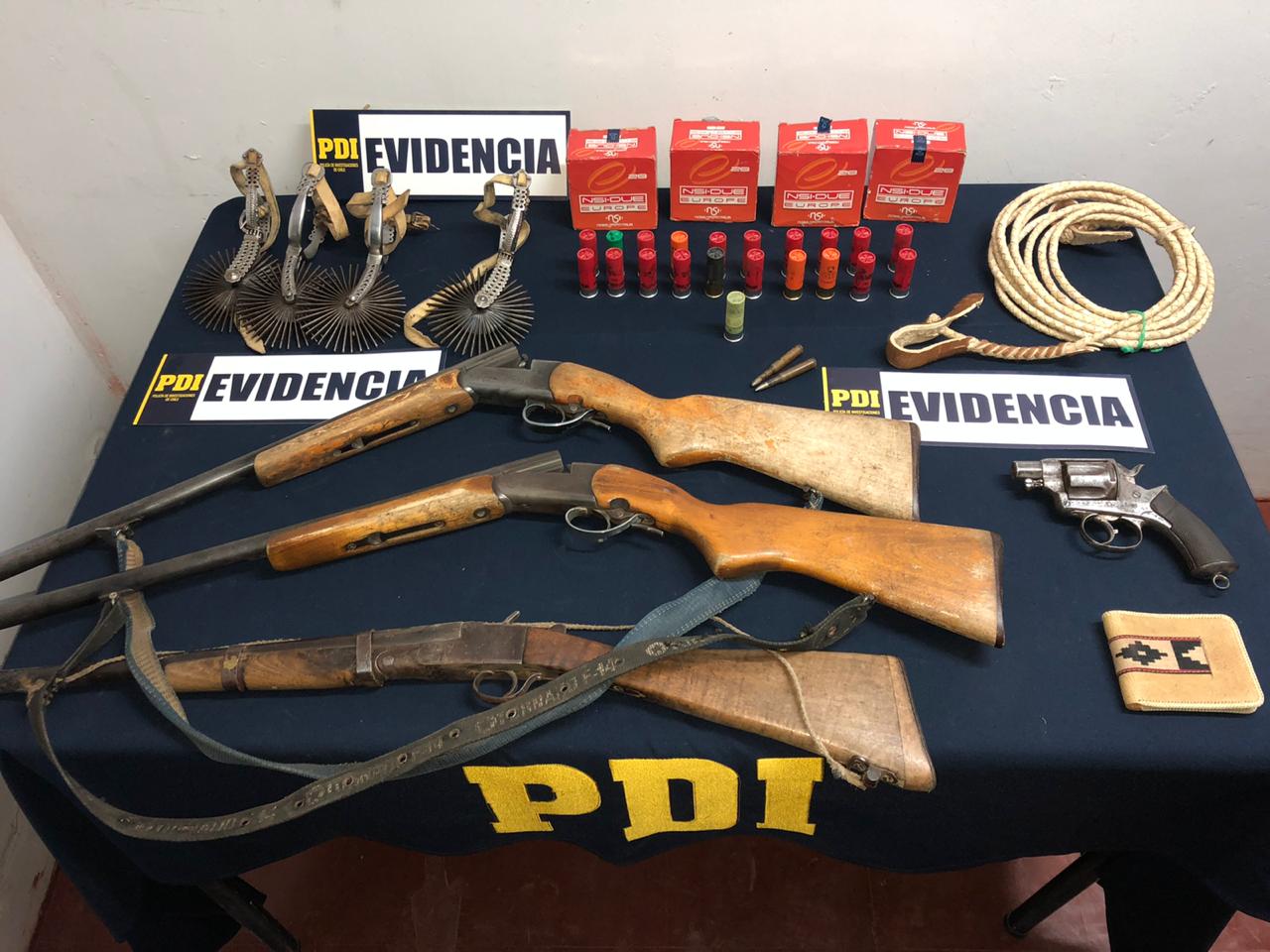 Al allanar su vivienda, la PDI incautó las escopetas sustraídas y el revólver calibre 38, siendo detenido por el delito de receptación flagrante.
