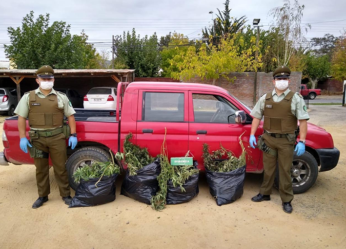 El domingo en la mañana personal de la Tenencia Peralillo detuvo a dos sujetos por porte y cultivo ilegal de Cannabis Sativa. Los imputados de 32 y 17 años, ambos con detenciones anteriores por diversos delitos, transportaban más de 10 kilos de marihuana procesada en una camioneta, la que también fue incautada.