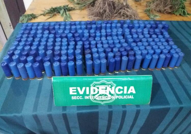 Los detenidos, identificados como E.C.J.C de 64 años, C.A.J.F de 19 años y L. E. V. N de 20 años, todos sin antecedente policiales, mantenían 198 cartuchos de escopeta calibre 12, de manera ilegal, por lo que también fueron imputados por tenencia ilegal de munición.