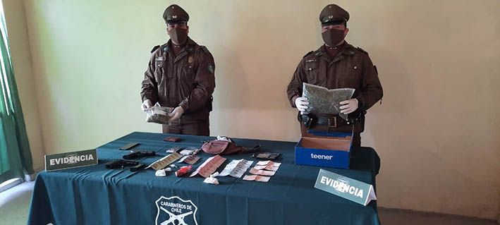 Diligencias efectuadas por carabineros permitieron el fin de semana detener a un hombre y una mujer, que además de incumplir el toque de queda se les encontró droga, específicamente clorhidrato de cocaína y marihuana elaborada durante una fiscalización realizada en primera instancia al vehículo en el que se movilizaban en Santa Cruz y luego al interior de sus domicilios.
