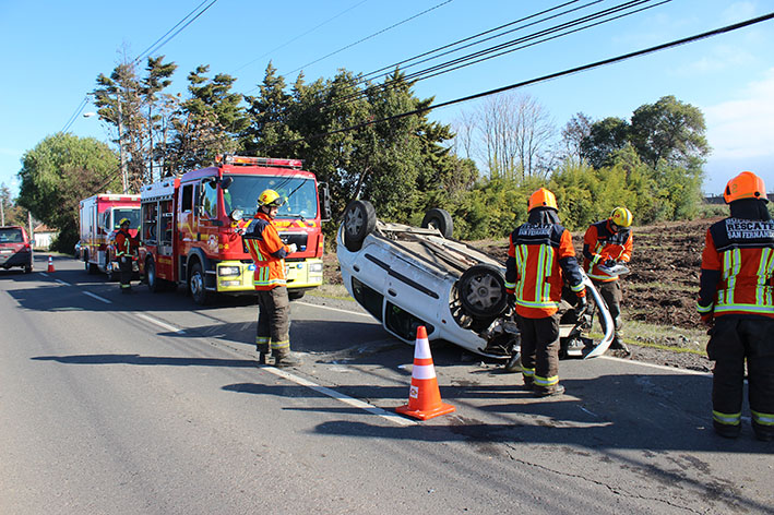 Al Hospital San Juan de Dios de San Fernando tuvo que ser trasladado el conductor de un automóvil que el fin de semana volcó en la entrada norte de la capital de la provincia de Colchagua. El accidente se produjo cerca de las 14 horas del domingo a la altura del kilometro 130 de la Ruta 5 Sur.