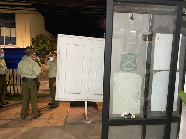 La conmemoración más violenta se desarrolló en Rancagua donde un grupo de mujeres atacó el cuartel de la Primera Comisaría de Carabineros. En la foto, el jefe de zona recorriendo la unidad que resultó con serios dalos estructurales.