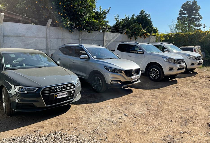Los automóviles, cuyo avalúo general bordea los 100 millones de pesos, habían sido robados a sus dueños mediante la utilización de fuerza o intimidación en la ciudad de Santiago y, posteriormente, trasladados a la comuna de Rengo, donde habrían sido comercializados a una fracción del precio del mercado.