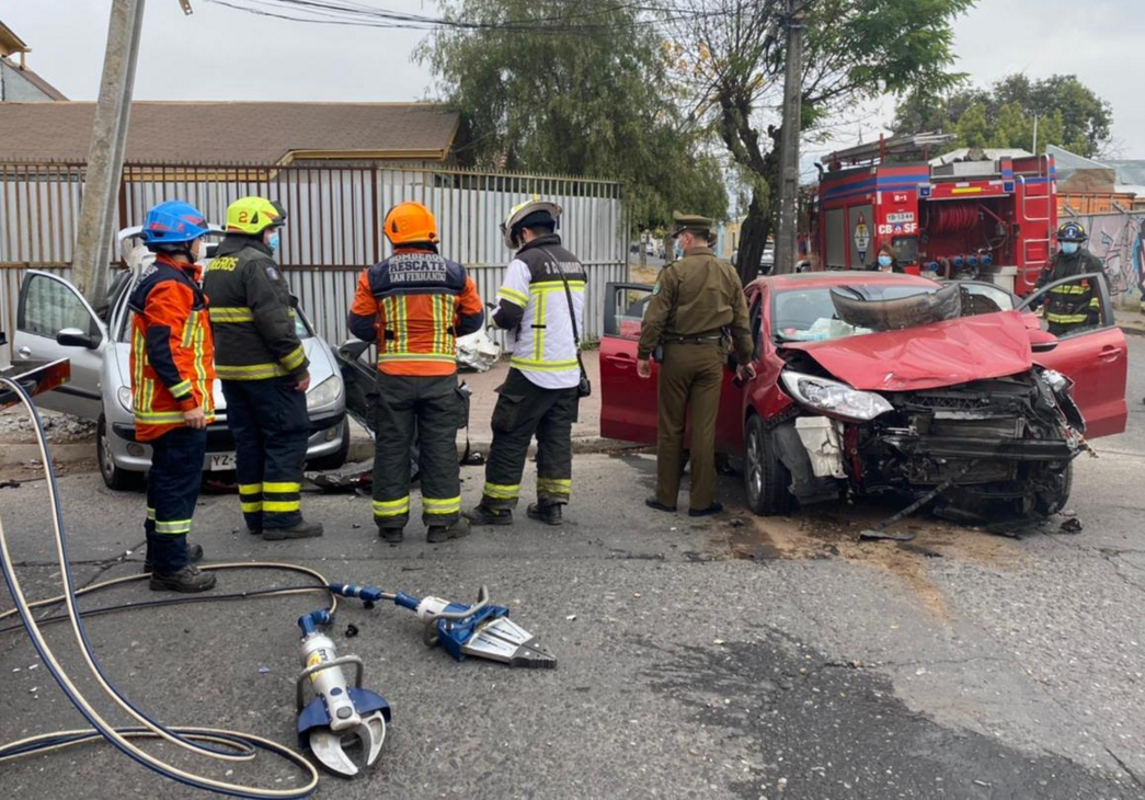 Dos personas resultaron lesionadas luego que los vehículos en que se movilizaban colisionaran violentamente y luego uno de ellos chocara con un poste en el sector sur poniente de la comuna de San Fernando.