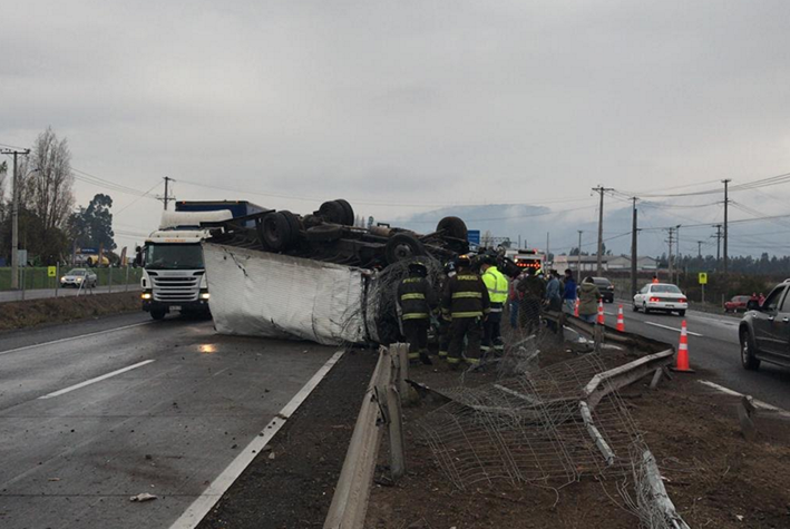 Con lesiones de gravedad resultó uno de los conductores de los camiones que la tarde del martes colisionaron violentamente en la carretera a la altura de San Fernando. El accidente se registró pasadas las 13 horas en el kilómetro 139 de la Ruta 5 Sur y fue protagonizado por los dos vehículos de carga.
