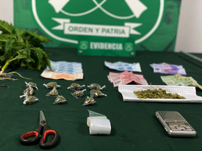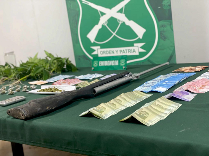 En el operativo fueron incautados algunos gramos de pasta base de cocaína, clorhidrato de cocaína y marihuana, además de ocho plantas del género cannabis sativa, cerca de un millón de pesos en dinero en efectivo, una carabina calibre 4.5 milímetros, dos escopetas de aire comprimido, una pistola a fogueo, dos pesas digitales y otros elementos asociados al ilícito.