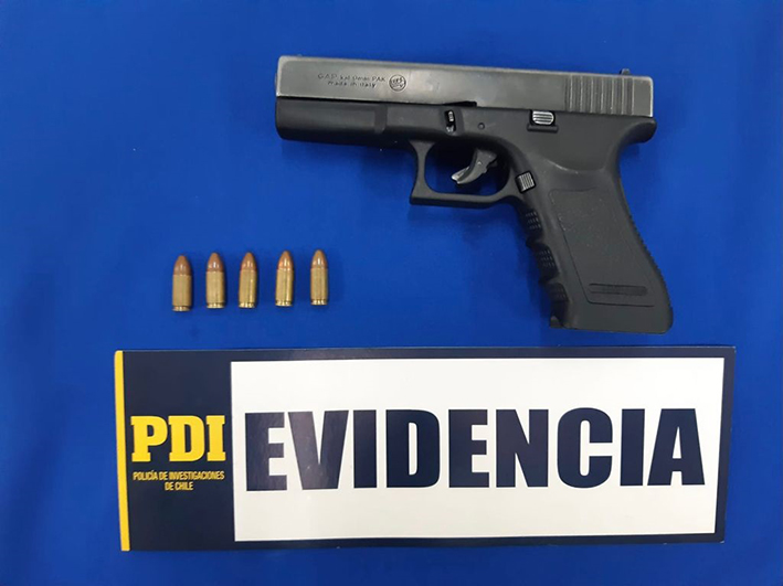 Luego de revisar la vivienda del detenido, ubicada en la Villa Hacienda Los Montes de Rengo, los detectives encontraron entre algunas de sus prendas munición 9 milímetros, la que fue incautada por la PDI, para ser remitida junto a la pistola previamente hallada al Laboratorio de Criminalística (LACRIM) Central, con la finalidad de ser periciada y verificar su operatividad, así como establecer o descartar su eventual utilización en algún ilícito.