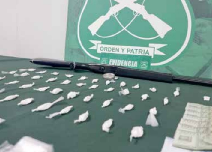 Durante el procedimiento se detuvo a un sujeto de 25 años de edad, quien mantenía 44 bolsas clorhidrato de cocaína que pesaron 37 gramos 100 milígramos de y 2 gramos 600 milígramos de pasta base de cocaína, a de dinero en efectivo de distinta denominación, una pesa digital, bolsas para dosificar droga, un rifle de aire comprimido, entre otras especies asociadas al delito.