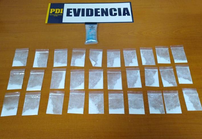 Durante el procedimiento, la PDI le halló al imputado 30 envoltorios que contenían clorhidrato de cocaína, avaluada en 290 mil pesos, motivo por el cual fue detenido, lo que fue informado al fiscal de turno, quien instruyó que fuese puesto a disposición del Juzgado de Garantía de Rengo, para su correspondiente control de detención, por los delitos flagrantes de amenazas e infracción a la Ley de Drogas.