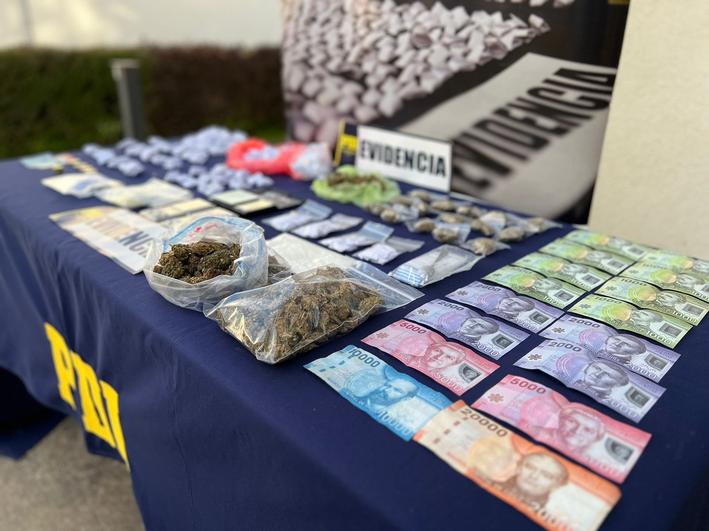 Lo anterior fue informado al fiscal de la causa, quien tramitó una orden de entrada y registro para la vivienda investigada, decreto judicial que permitió a los detectives irrumpir en el inmueble y encontrar 64 gramos de clorhidrato de cocaína, 312 gramos de cannabis y 68 gramos de cocaína base, droga avaluada en 6,2 millones de pesos.