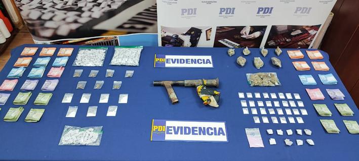 De igual manera, la PDI señaló que también incautó $992.850 mil pesos, aparentemente obtenidos de la venta de estupefacientes además de 01 escopeta de fabricación artesanal.