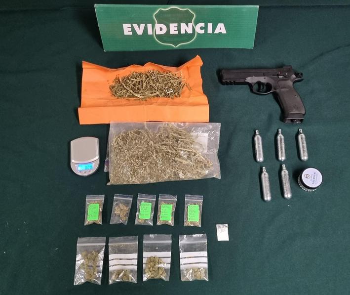 El fiscal de turno dispuso que el sujeto de 22 años fuera trasladado a la unidad policial a la espera de su formalización en el Tribunal de Garantía de Litueche. En el operativo se incautó un arma tipo pistola de aire comprimido y 137 gramos de marihuana dosificada y a granel./