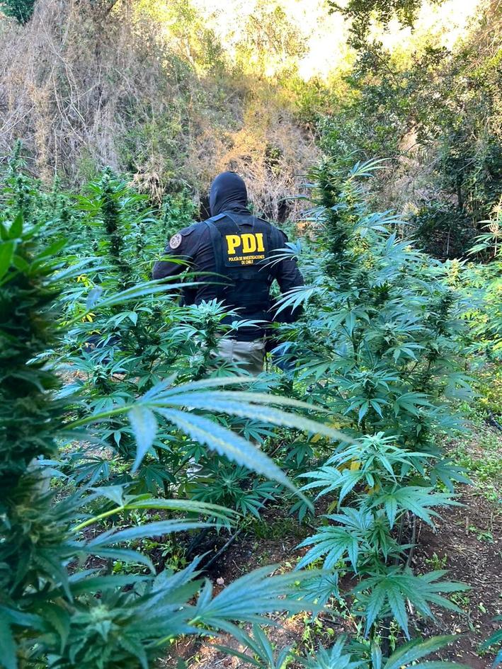 Debido a lo anterior, el personal de la PDI se trasladó hasta el lugar indicado, donde comprobaron que, efectivamente, existía una plantación de marihuana con 823 ejemplares de una altura que variaba entre los 50 centímetros y los 2,5 metros de altura.