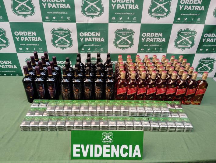 En el operativo se incautó 105 bebidas alcohólicas de diversos licores, marcas y capacidades, y 150 cajetillas de cigarrillos.