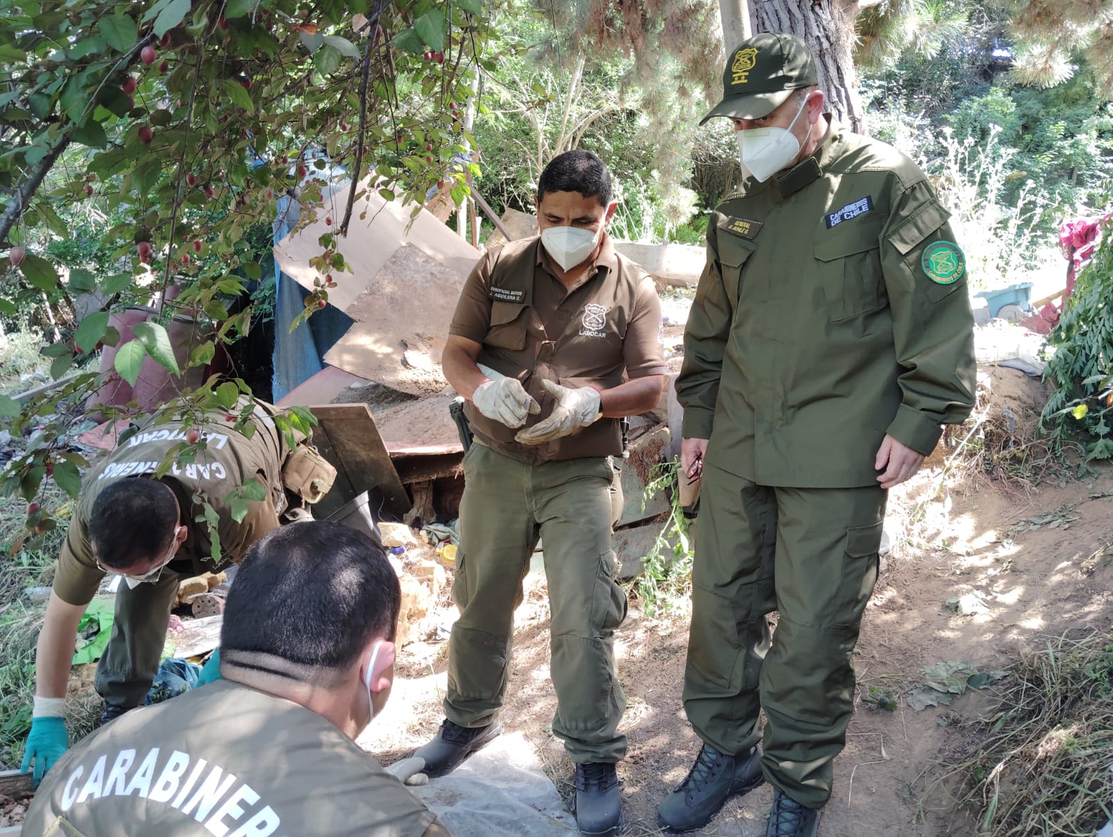 Un amplio despliegue logísticos, humano y tecnológico está desarrollando Carabineros en el sector Pueblo de Indios de la comuna de San Vicente para esclarecer el hallazgo de dos cuerpos la jornada del jueves, a raíz de la investigación por microtráfico y presunta desgracia, desarrollada por la Sección OS-9 O'Higgins, liderada por la Fiscalía Local; y determinar si existen más cuerpos en el lugar.