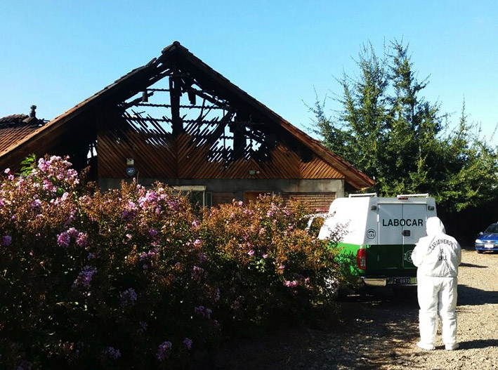 Peritos del Laboratorio de Criminalística de la Prefectura de Carabineros Cachapoal investiga las causas y dinámica de cómo se habría originado un incendio estructural, que en las últimas horas consumió totalmente una vivienda en la comuna de Rengo.