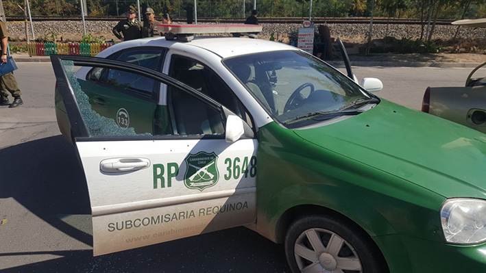 El prefecto de Cachapoal, coronel Juan Baeza, dijo que afortunadamente no hubo carabineros lesionados, no obstante uno de los carros policiales resultó con dos impactos de bala en el parabrisas y ventanilla derecha.