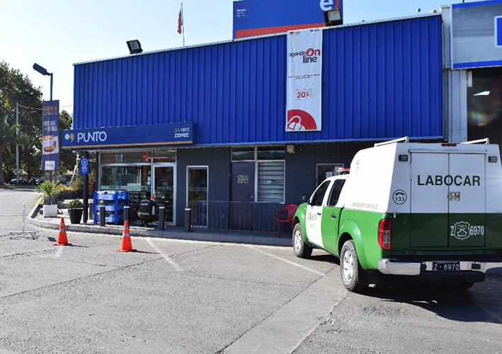Peritos del Laboratorio de Criminalística de la Prefectura de Carabineros Cachapoal investigan dos violentos asaltos que en las últimas horas afectaron a estaciones de servicio de la comuna de Rancagua.