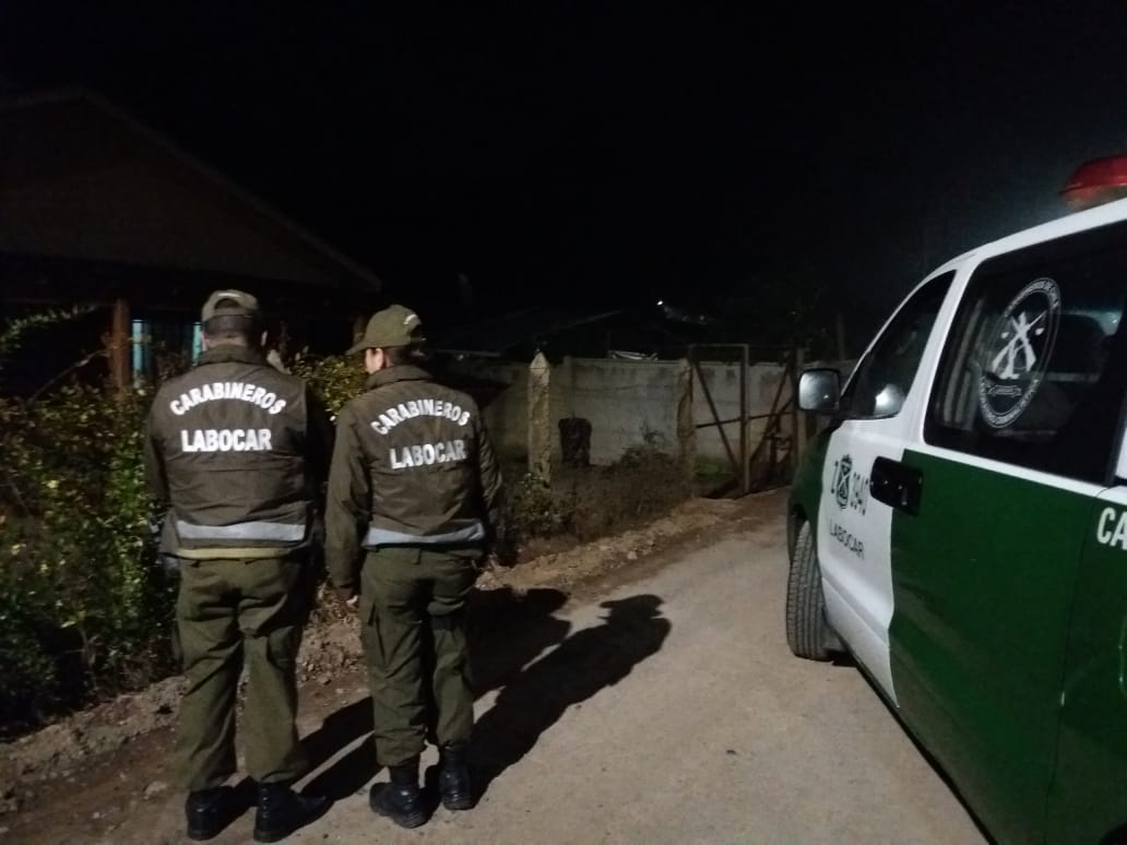 Peritos de la Sección Criminalística de Carabineros, LABOCAR, investigan el violento ataque que sufrió una mujer por parte de su ex conviviente en la comuna de San Vicente de Tagua Tagua, durante la madrugada de este lunes.