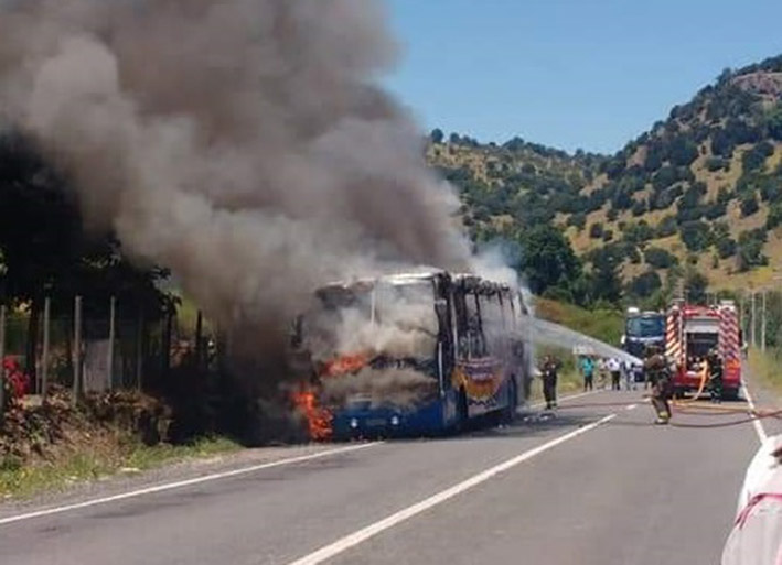 Providencialmente salvaron ilesos 25 alumnos del Instituto Inacap cuyo bus en que viajaban se quemó en su totalidad en la ruta que une Chépica con la Cuesta El Peral al interior de la provincia de Colchagua.