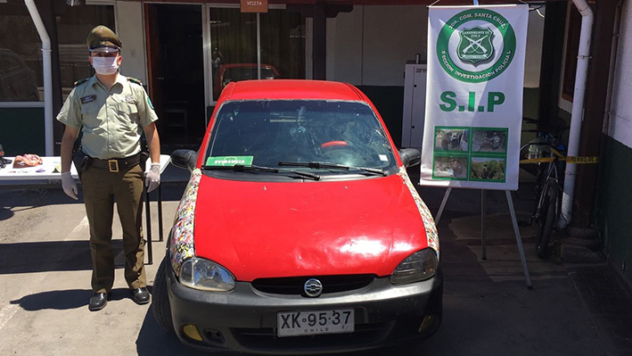 En la Ruta I-340 a la altura del Km. 6.3 carabineros del Retén El Huique procedió a fiscalizar el auto marca Chevrolet modelo Corsa, encontrando en su interior una máscara de plástico, un revolver a fogueo, una pistola y un envoltorio contenedor de marihuana, razón por la cual se procedió a la detención de sus ocupantes identificados como I.A.V.V., 23 años, E.M.P.O., 24 años y B.D.S.F, 25 años, los dos últimos con antecedentes penales.