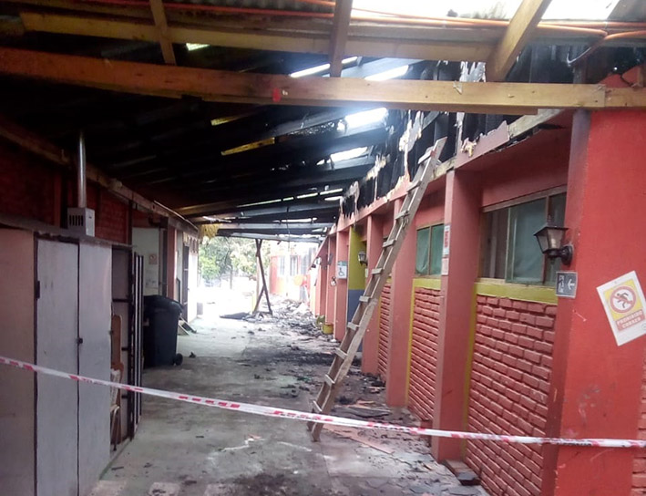 A raíz de la fuerza del fuego, la sala de música y arte se quemó en su totalidad al igual que gran parte de los instrumentos que había en su interior. Las llamas se propagaron también al sector, donde se encuentran los baños resultando cuatro de ellos dañados lo mismo que la bodega en la que se almacenaba todos los artículos deportivos del establecimiento educacional.