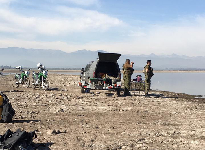De inmediato, la familia interpuso una denuncia por presunta desgracia iniciándose en ese momento la búsqueda que hoy está siendo encabezada por el Grupo de Operaciones Policiales Especiales (GOPE) de la Prefectura de carabineros Cachapoal y que cuenta con el apoyo de otra patrulla similar que llegó desde la región de Maule con un robot subacuático, elemento que les servirá para revisar esa zona de gran dimensión y poca visibilidad.