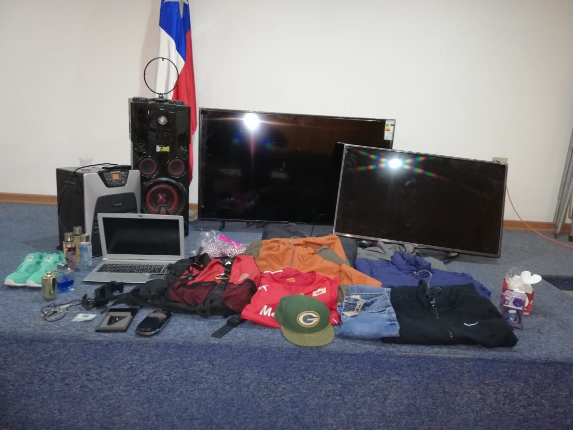 En el operativo, carabineros recuperó una serie de artículos electrónicos, entre ellos algunos plasma, equipo de música, prendas de vestir y una pistola calibre 22 milímetros, especies que habían sido robadas la misma tarde del martes en domicilios de las Villas Los Volcanes y Venecia./