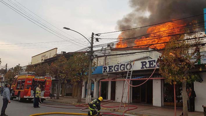 Una vivienda y tres locales comerciales resultaron afectados por un devastador incendio que la mañana del sábado se originó en el sector céntrico de la comuna de Santa Cruz, específicamente en la intersección de las calles Rafael Casanova y Claudio Cancino, a una cuadra de la plaza de armas de esa ciudad.