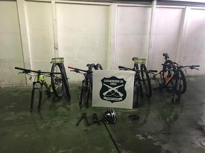 En el procedimiento, carabineros recuperó cuatro bicicletas, las cuales fueron devueltas a sus propietarios. Los tres delincuentes fueron puestos en las últimas horas a disposición del Tribunal de Garantía./
